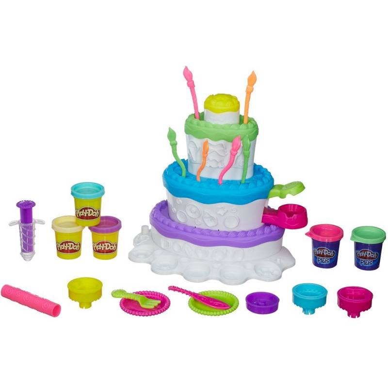 Открой чудесный мир сладостей с этим праздничным тортом! Снаружи украшай его с помощью пластилина Play-Doh PLUS, а внутри храни все свои кондитерские инструменты. В комплект входят пять больших баночек пластилина Play-Doh.