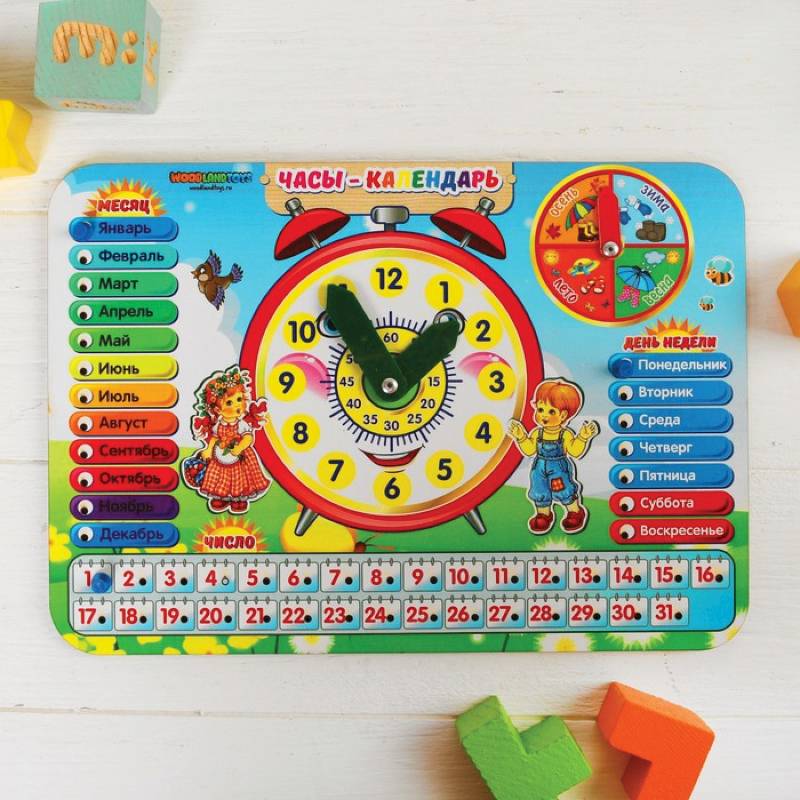 —Календарь обучающий 'Часы', из дерева
