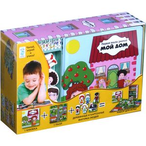 Набор предлагает бесконечные возможности для игры и обучения. Используйте коробку, пазл и деревянные фигурки семьи и создайте свой собственный домик.