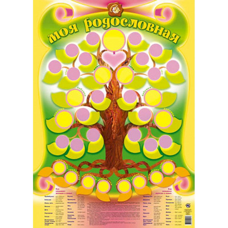 Плакат Моя родословная поможет родителям вместе с ребенком собрать данные о ближайших родственниках и создать дерево своего рода.