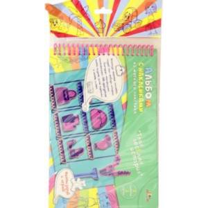 В альбоме 3 листа мягкого пластика, на которых напечатаны сюжеты и 3 листа с фигурными наклейками.