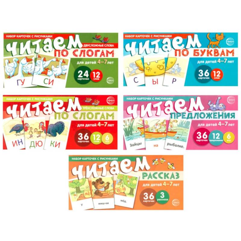 Набор карточек с рисунками. Читаем по буквам. Для детей 4-7 лет