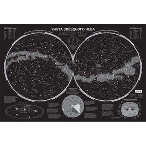 Звёзды на карте ранжированы по видимой звёздной величине. Даны названия самых ярких звёзд и условные очертания всех 88 созвездий. Приведены краткие сведения о Солнечной системе, небесной сфере, звёздных координатах, эклиптике и зодиакальном круге. Карта может быть рекомендована всем, кто интересуется астрономией и любит романтику.