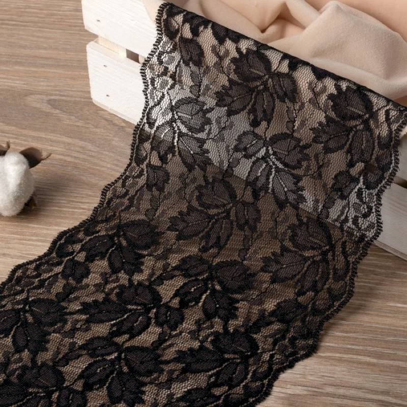 —Кружево эластичное, 150 мм x 10 ± 1 м, цвет чёрный