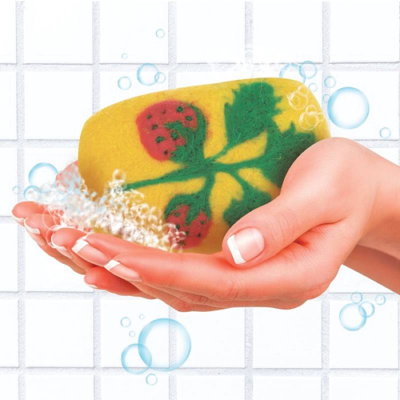 Игрушка из шерсти, мыло с мочалкой 'Ягоды'