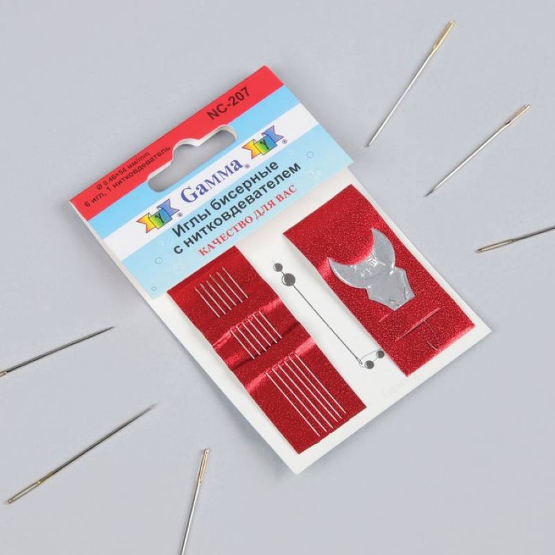 —Иглы для бисера, с нитевдевателем, 6 шт