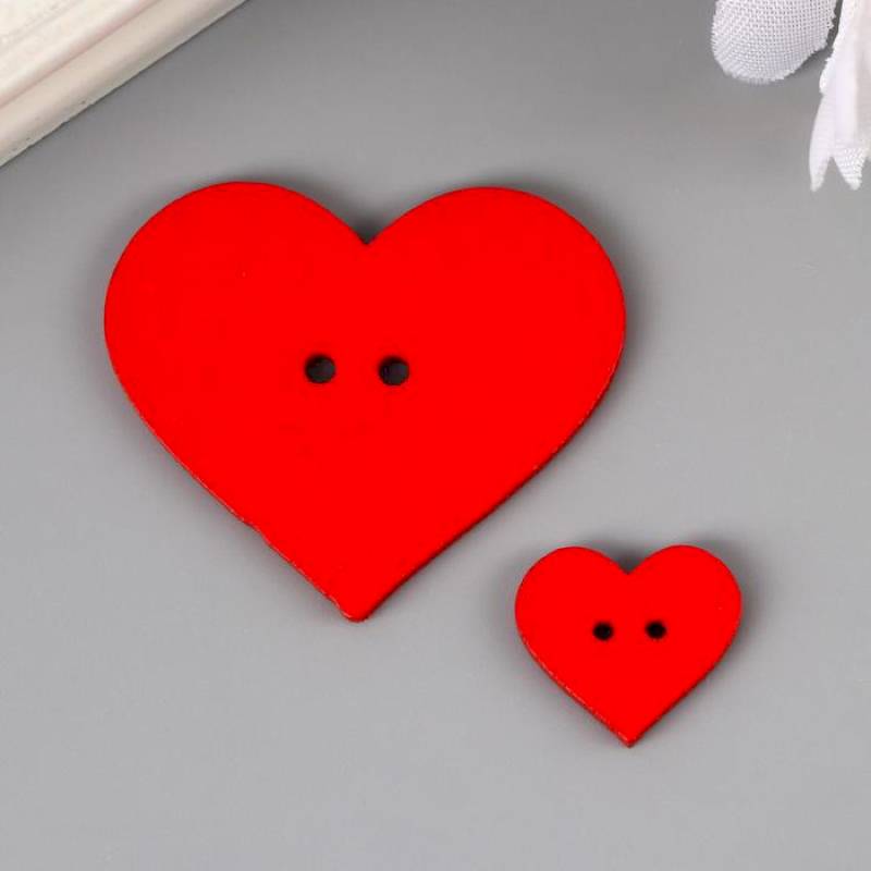 Пуговицы декоративные 'Сердце', дерево (набор 12 шт) ассорти, красные