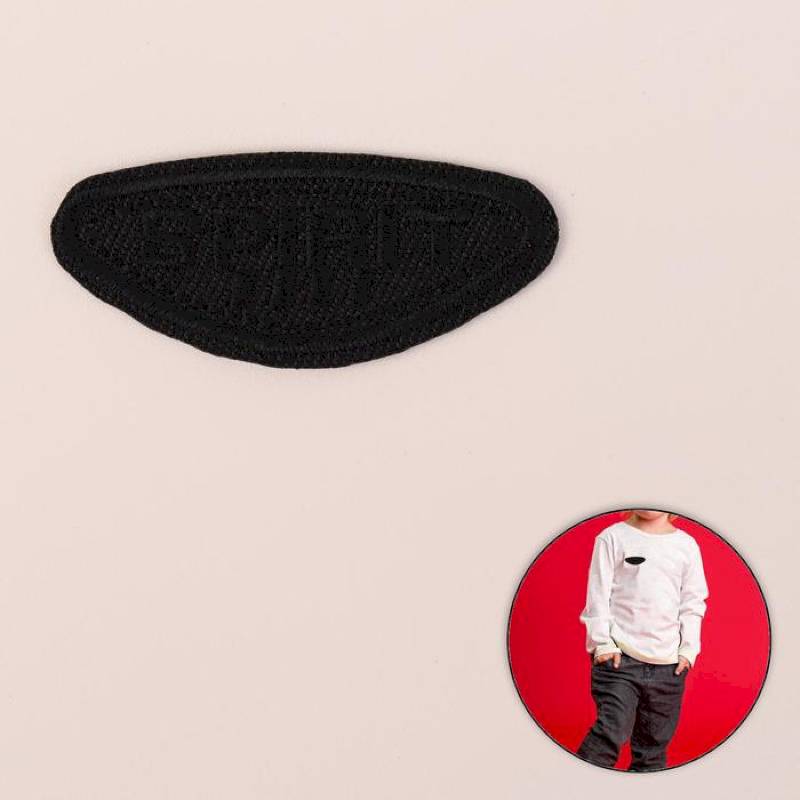 Постелите одежду на ровную поверхность. Разместите аппликацию на ткани липким слоем вниз.