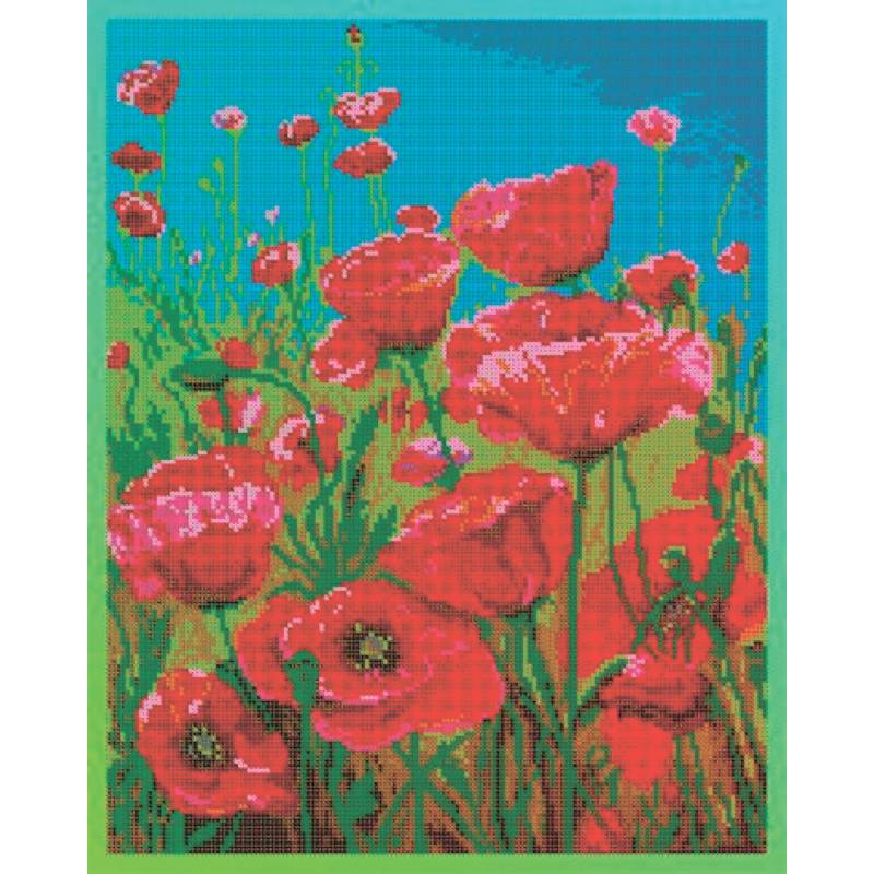 —'Маковое поле' 30х38см набор на атласе для вышивания чешским бисером 'Вышивочка' ВЛ-063П