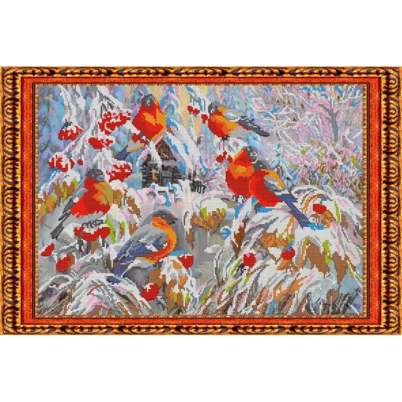 —«Светлица» набор для вышивания бисером №123 «Снегири» бисер Чехия 39,7x33,2 см