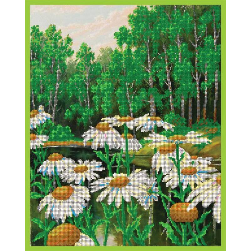 —ВЛ-066 'Ромашки' 30x38см набор на атласе для вышивания чешским бисером 'Вышивочка'