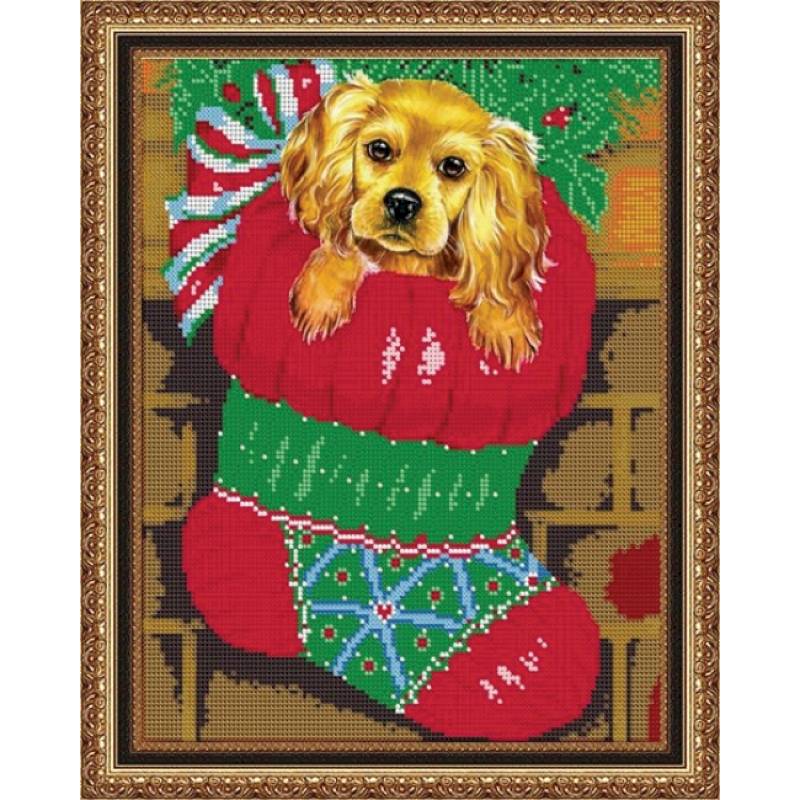 'Новогодний щенок' 24*30см набор для вышивания чешским бисером 'Вышивочка' ВЛ-004