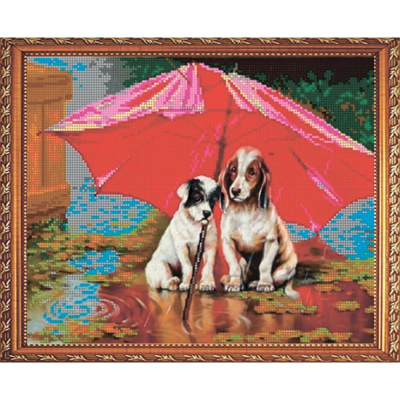 —'Под дождём, но вдвоём' 30x24см набор на атласе для вышивания чешским бисером 'Вышивочка' в коробке ВЛ-038