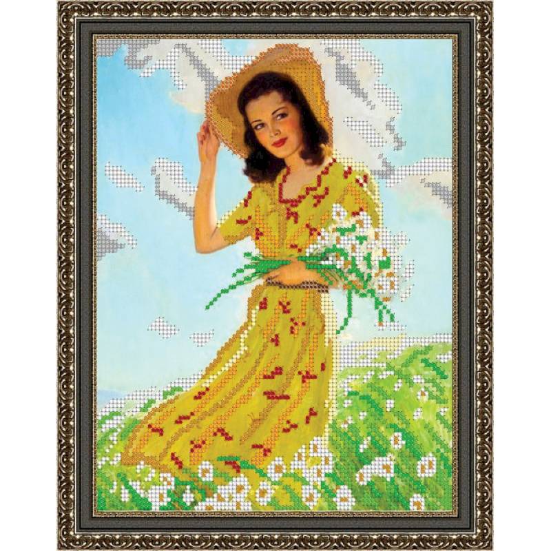 —«Светлица» набор для вышивания бисером №150 «Девушка с ромашками» бисер Чехия 19x24см