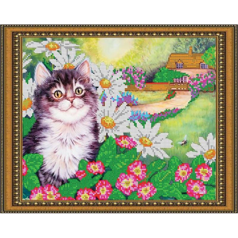 —«Светлица» набор для вышивания бисером №333 «Радостный котенок» бисер Чехия 30x24см