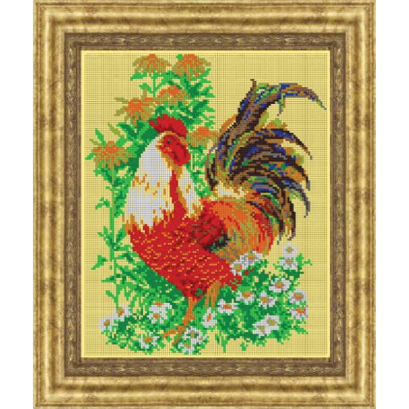 —«Светлица» набор для вышивания бисером №500П «Петушок в ромашках» бисер Чехия 24x30 см