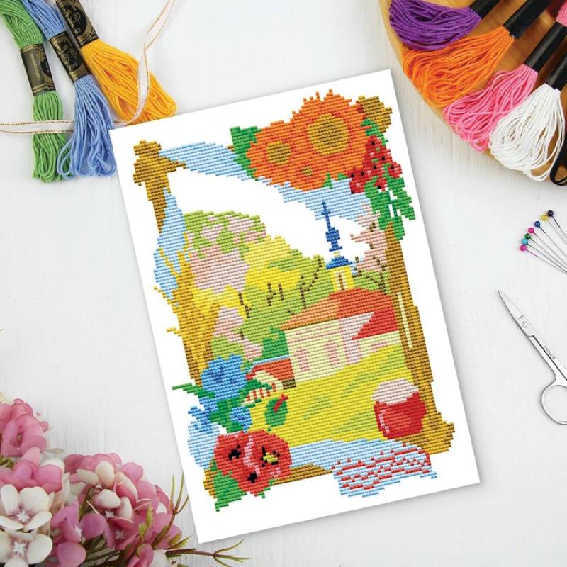 —Набор для творчества. Вышивка крестиком «В деревне» 25x35 см. Набор для творчества