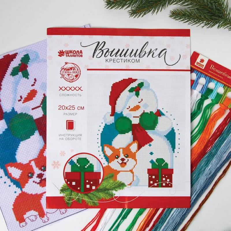 —Вышивка крестиком «Снеговик с собачкой», 25x20 см