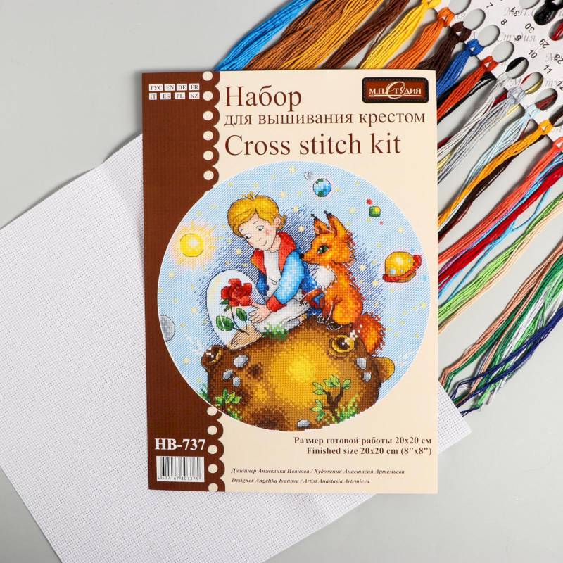 В набор входит: канва Аида №14, нитки мулине 30 цвета, игла, цвето-символьная схема и руководство по вышиванию.