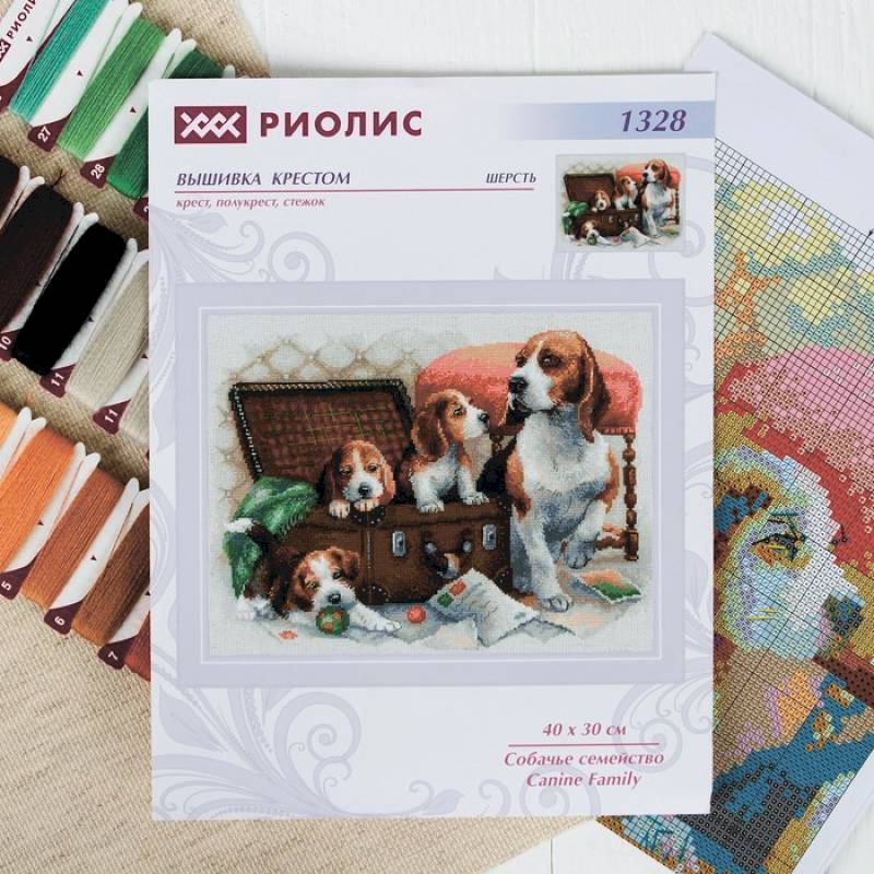 —Вышивка крестом 'Собачье семейство', 40x30 см