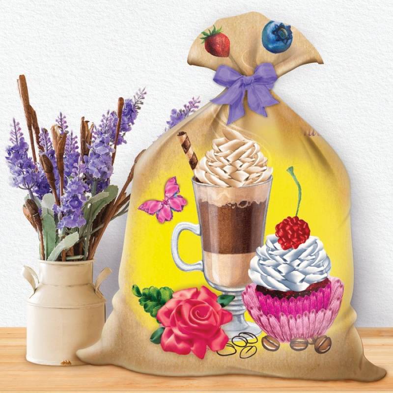 —Вышивка лентами на мешочке 'Приятного чаепития', 35x25 см