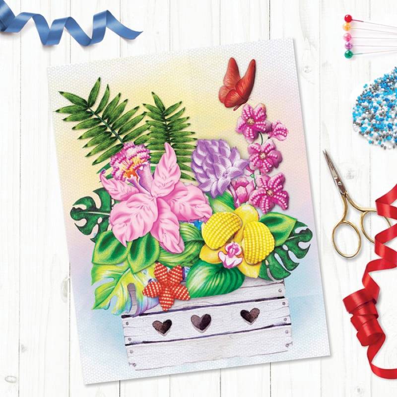Вышивка объёмная бисером и лентами 'Тропическая композиция', 24x32 см