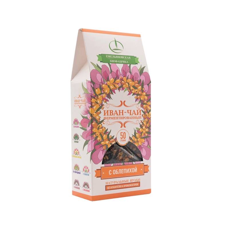 Состав: листья иван-чая (кипрей узколистный, Epilobium angustifolium L.) ферментированные, ягоды облепихи сушёные.